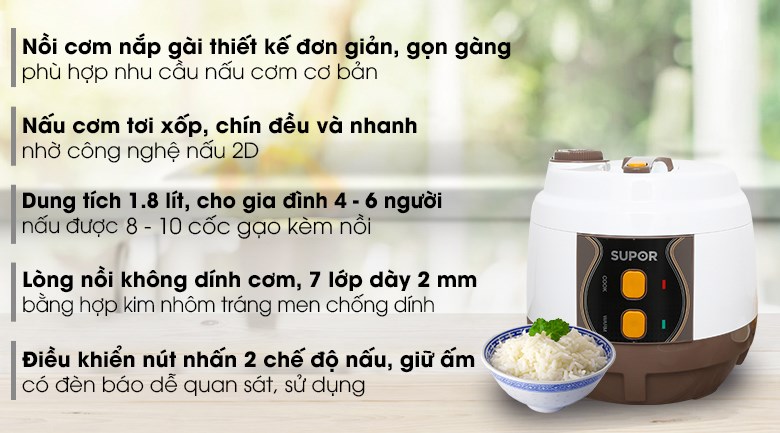 Thông số kĩ thuật Nồi cơm niêu điện tử Supor CFXB50YB13VN-50 – 1.8L
