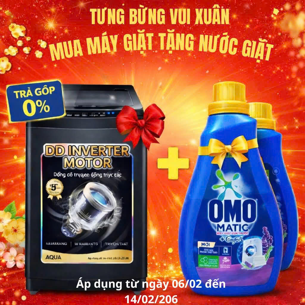 Máy giặt Aqua Inverter 10 kg AWM10-B316LBlà sự lựa chọn lý tưởng cho các gia đình từ 4 đến 6 thành viên, với khối lượng giặt 10 kg. Chiếc máy giặt cửa trên này không chỉ sở hữu thiết kế hiện đại, mà còn tích hợp công nghệ Inverter tiên tiến, mang lại khả năng vận hành êm ái và siêu tiết kiệm điện. Máy giặt Aqua Inverter 10 kg AWM10-B316LB đảm bảo quần áo được giặt sạch tối ưu, bảo vệ sợi vải và giảm thiểu chi phí điện nước hàng tháng.