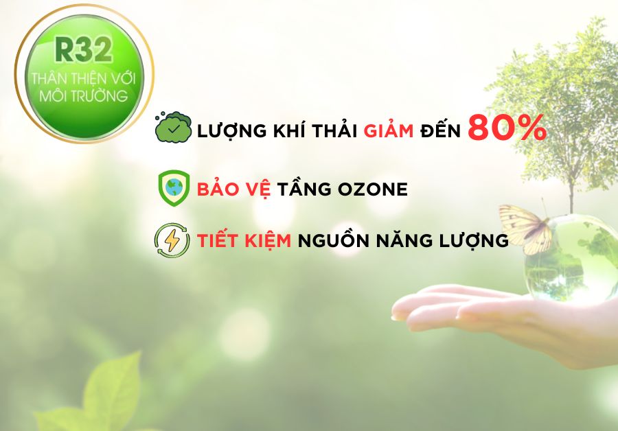 - Gas R32 thân thiện, làm lạnh sâu.