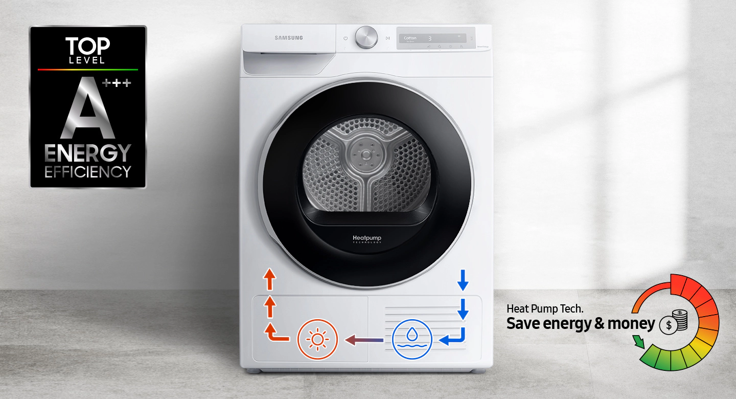 Công nghệ bơm nhiệt giúp máy tiết kiệm điện hiệu quả.