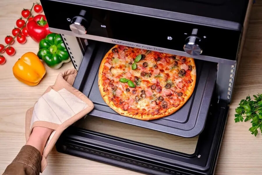 - Công nghệ khí nóng đối lưu giúp thực phẩm chín đều, vàng giòn mà không cần dầu mỡ.