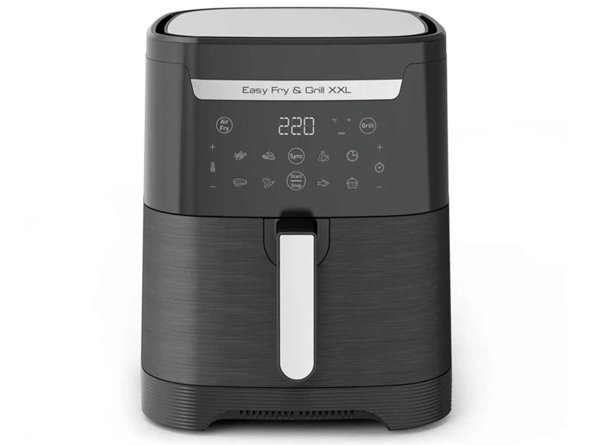 Nồi chiên không dầu Tefal 6.5 lít EY801815 sở hữu thiết kế hiện đại với kiểu dáng mạnh mẽ, đường nét tinh tế, dễ dàng hòa hợp với nhiều không gian bếp khác nhau. Tổng thể sản phẩm mang lại cảm giác cao cấp, chắc chắn và tiện dụng cho quá trình sử dụng hằng ngày.
