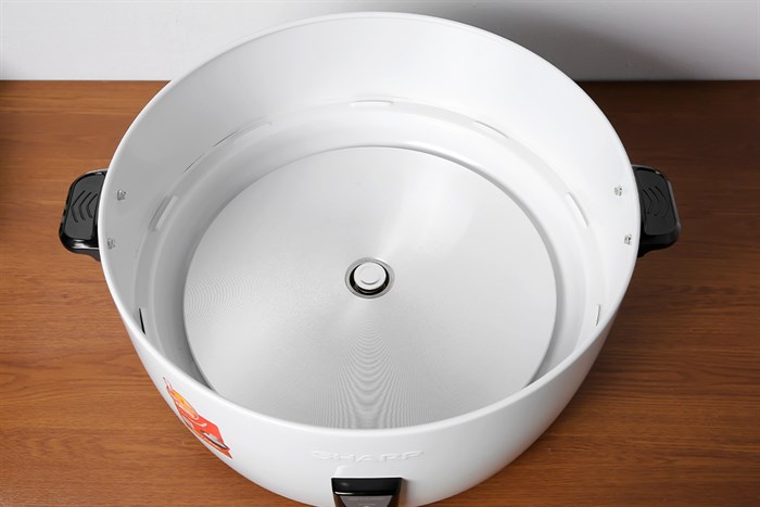 Nồi cơm điện Sharp 10 lít KSH-D1010V được trang bị mâm nhiệt kích thước lớn, truyền nhiệt mạnh và lan tỏa đều. Nhờ đó, cơm chín tơi, không bị sống hoặc bị khét đáy. Đây là yếu tố quan trọng khi nấu khối lượng lớn, đảm bảo mẻ cơm nào cũng đạt chất lượng cao.