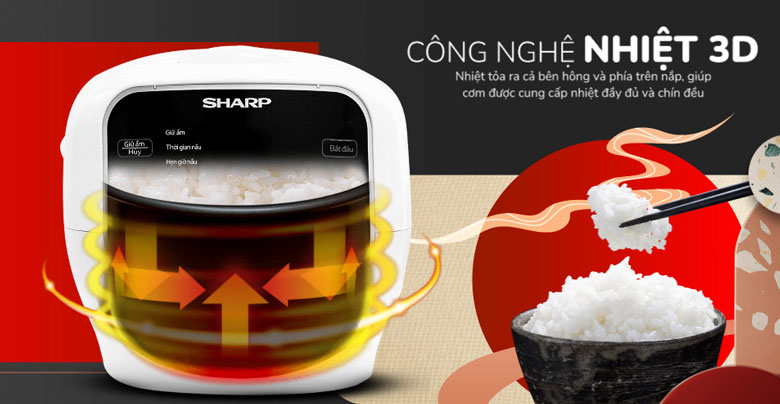 Nồi được trang bị công nghệ nấu 3D, giúp nhiệt tỏa đều từ cả hai bên hông và phía trên nắp nồi, kết hợp với công suất 835W, mang đến cơm chín đều, tơi xốp và giữ được dinh dưỡng. Với dung tích 1.8 lít, nồi phù hợp cho gia đình từ 4-6 người.