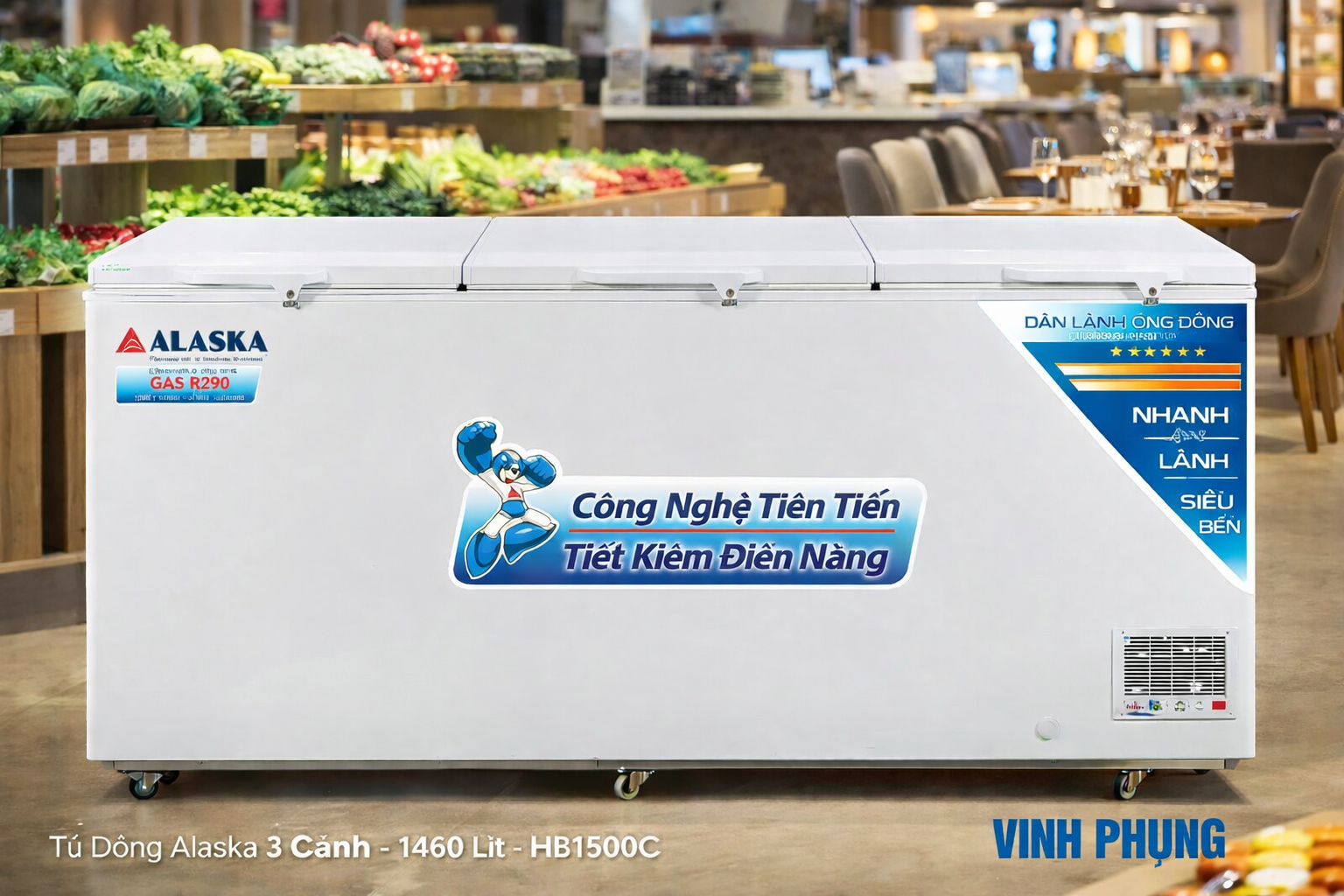 Tủ Đông Alaska 3 Cánh -1460 Lít- HB1500C có khả năng làm lạnh sâu giúp thực phẩm được bảo quản lâu dài.