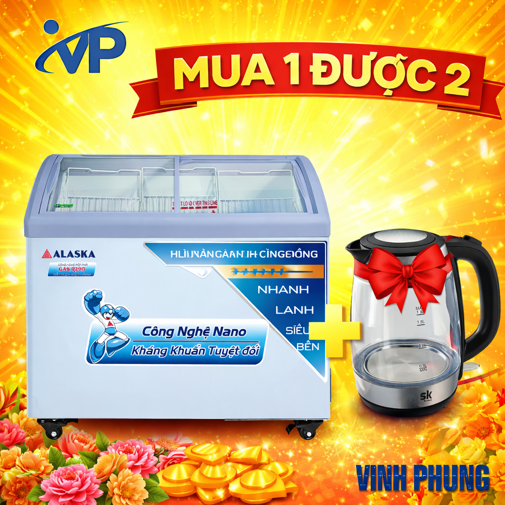 Với dung tích 300 lít, tủ cung cấp không gian chứa rộng rãi, thiết kế nắp kính cong hiện đại và khả năng giữ lạnh sâu giúp thực phẩm luôn tươi ngon. Dàn lạnh đồng nguyên chất, gas R600A thân thiện môi trường và máy nén bền bỉ giúp Tủ đông nắp kính Alaska 300 lít KC-210C vận hành êm ái và tiết kiệm điện năng.
