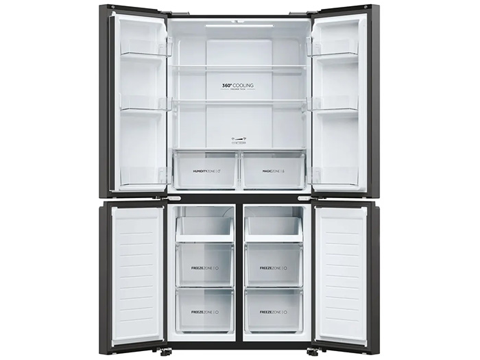 Thiết kế Multi Door giúp phân chia tủ thành nhiều khu vực bảo quản riêng biệt. Tủ lạnh Aqua Inverter 469 lít AQR-M560XA(GL) giảm thất thoát hơi lạnh nhờ cửa mở theo vùng, đồng thời tăng độ thuận tiện khi lấy thực phẩm. Kiểu dáng này mang lại sự tiện nghi và hiện đại cho gia đình.