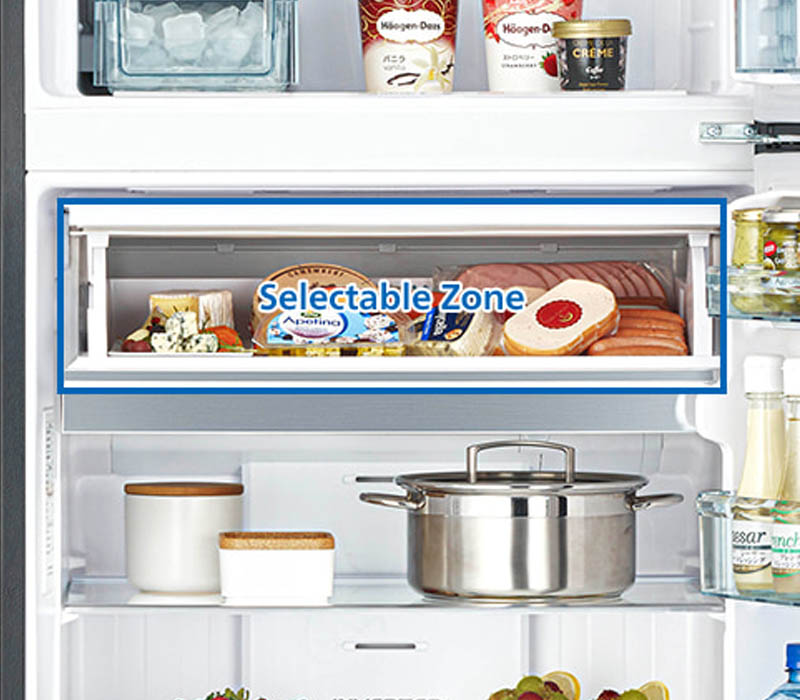 Một trong những tính năng đáng giá nhất trên Tủ lạnh Hitachi inverter 339 lít R-FVX450PGV9 (GBK) chính là ngăn Selectable Zone. Bạn có thể tùy chỉnh nhiệt độ tùy theo nhu cầu sử dụng thực tế: