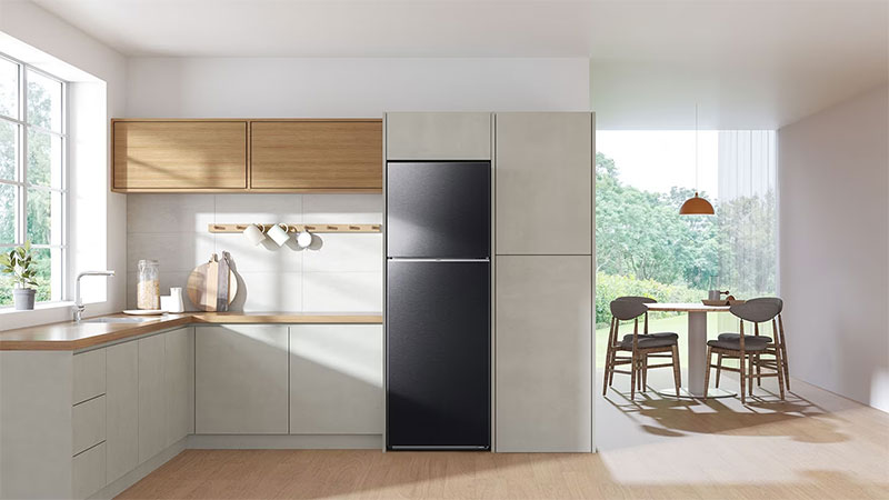Tủ lạnh Samsung Inverter RT31CG5424B1SV sở hữu ngoại hình hiện đại với gam màu đen sang trọng, đường nét gọn gàng và tinh tế. Mặt tủ phẳng kết hợp tay nắm âm tạo nên tổng thể liền lạc, dễ phối hợp với mọi phong cách nội thất, đặc biệt phù hợp với căn hộ hiện đại và nhà phố.
