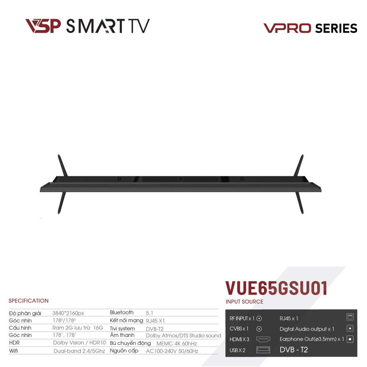 TiVi 65 inch VSP Google 4K VUE65GSU01 – Màn hình lớn, trải nghiệm đỉnh cao
