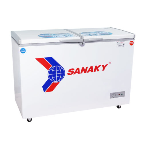 Tủ đông mát Sanaky 260 lít VH-365W2 hội tụ đủ: hai ngăn – hai nắp linh hoạt, làm lạnh 360°, dàn lạnh nhôm, R600a tiết kiệm, PU dày giữ lạnh, máy nén êm.