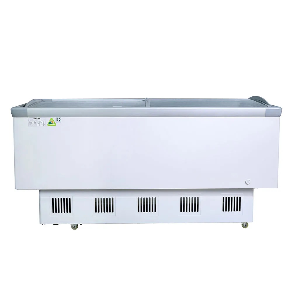 Tủ đông nắp kính Alaska 600 lít KN-400 được thiết kế với dáng nằm ngang và phần nắp kính cong hai lớp trong suốt, giúp người dùng dễ dàng quan sát thực phẩm bên trong mà không cần mở tủ. Nắp kính được làm từ kính cường lực dày dặn, chống đọng sương, tạo nên vẻ sang trọng và chuyên nghiệp cho không gian trưng bày.